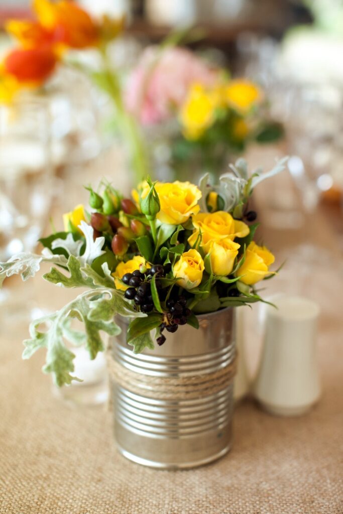 2.空き缶は、ラベルシールをはがしてポップなインテリア花瓶にしましょう。